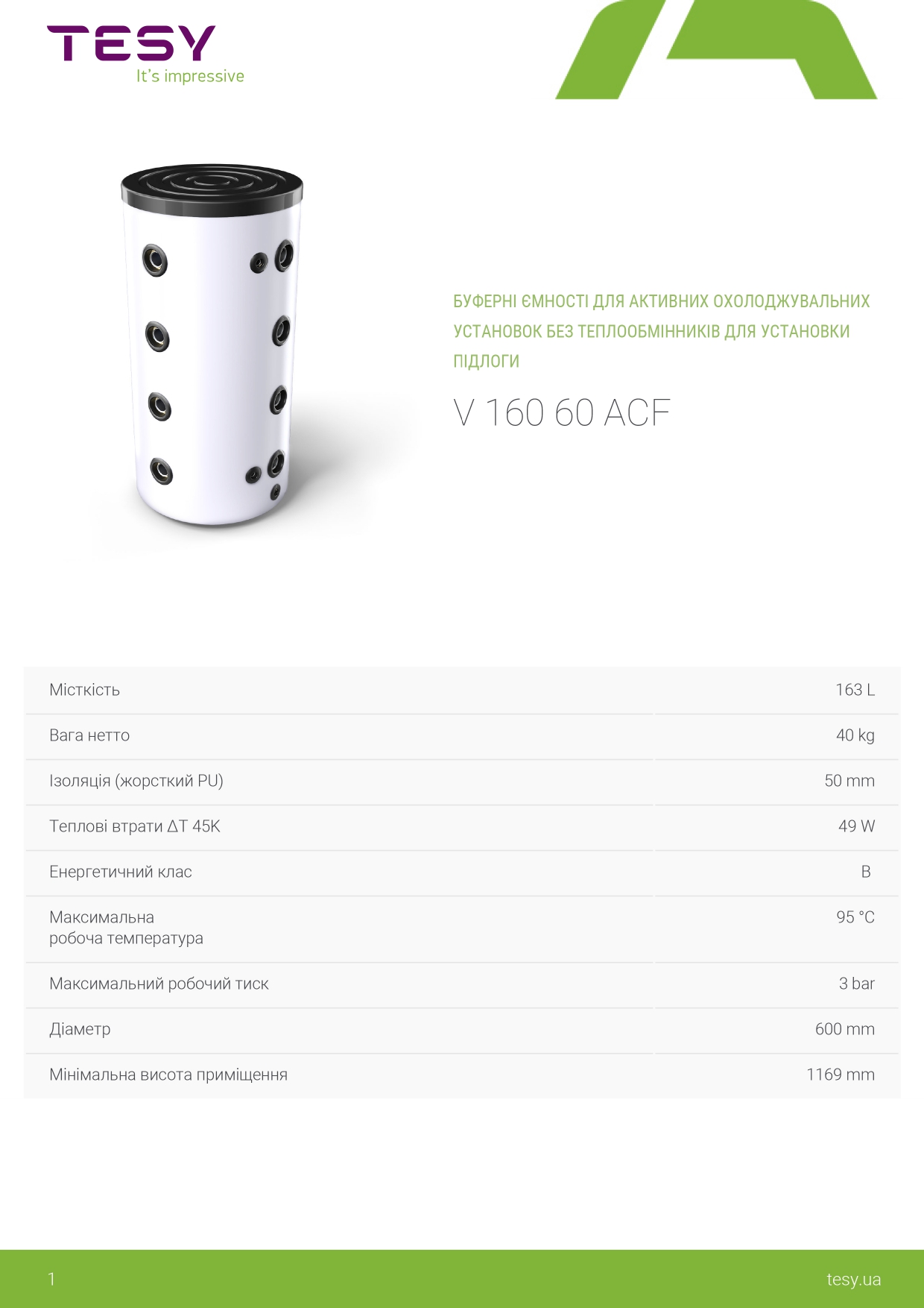 Холодоакумулятор TESY V 160 60 – ACF напольна в твердій ізоляції