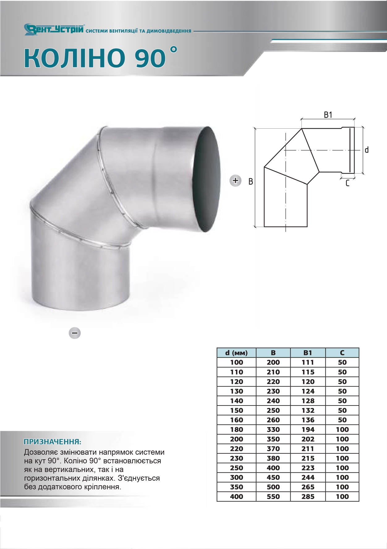 Код: Коліно 90° із нержавіючої сталі 0,5мм AISI 304