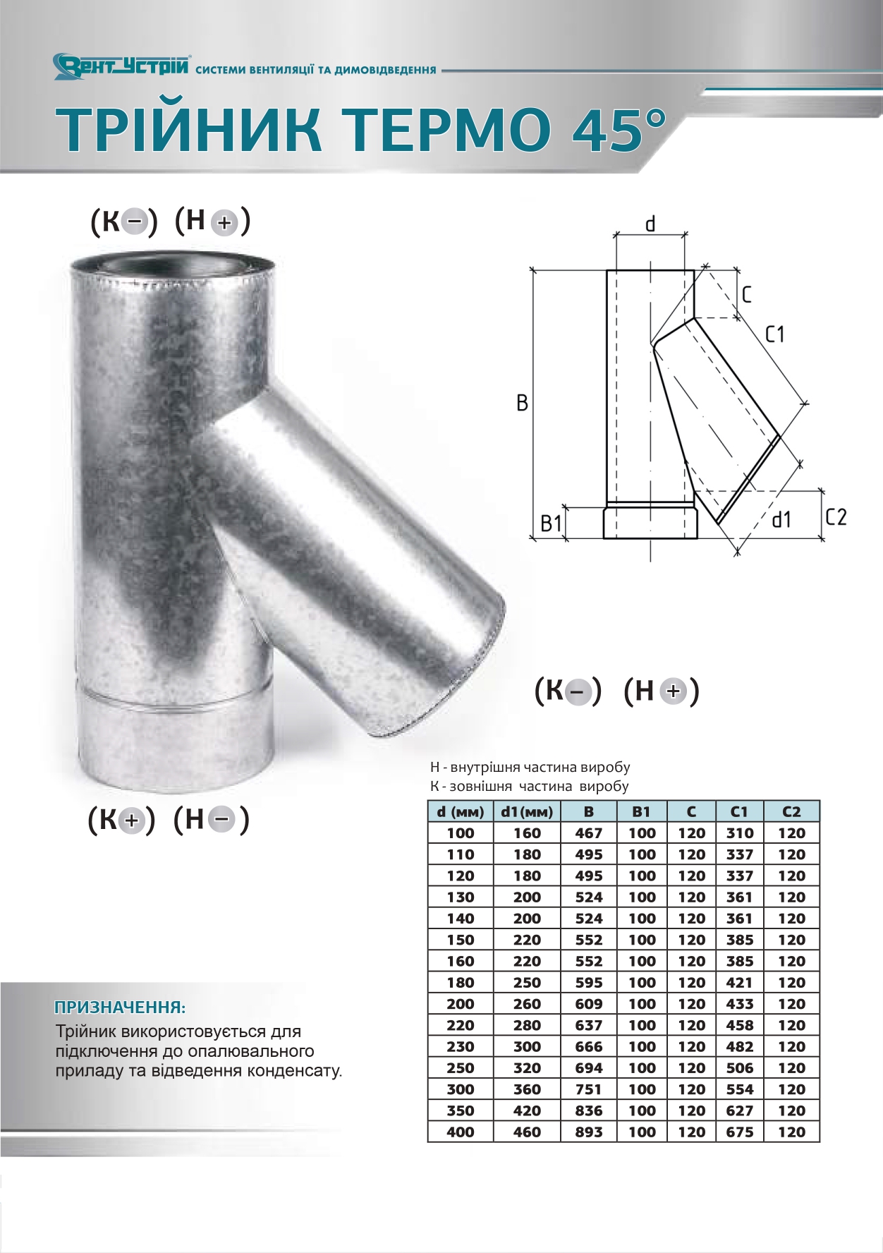 Код: Трійник 45° із нержавіючої сталі 0,5мм з теплоізоляцією у нержавіючому кожусі