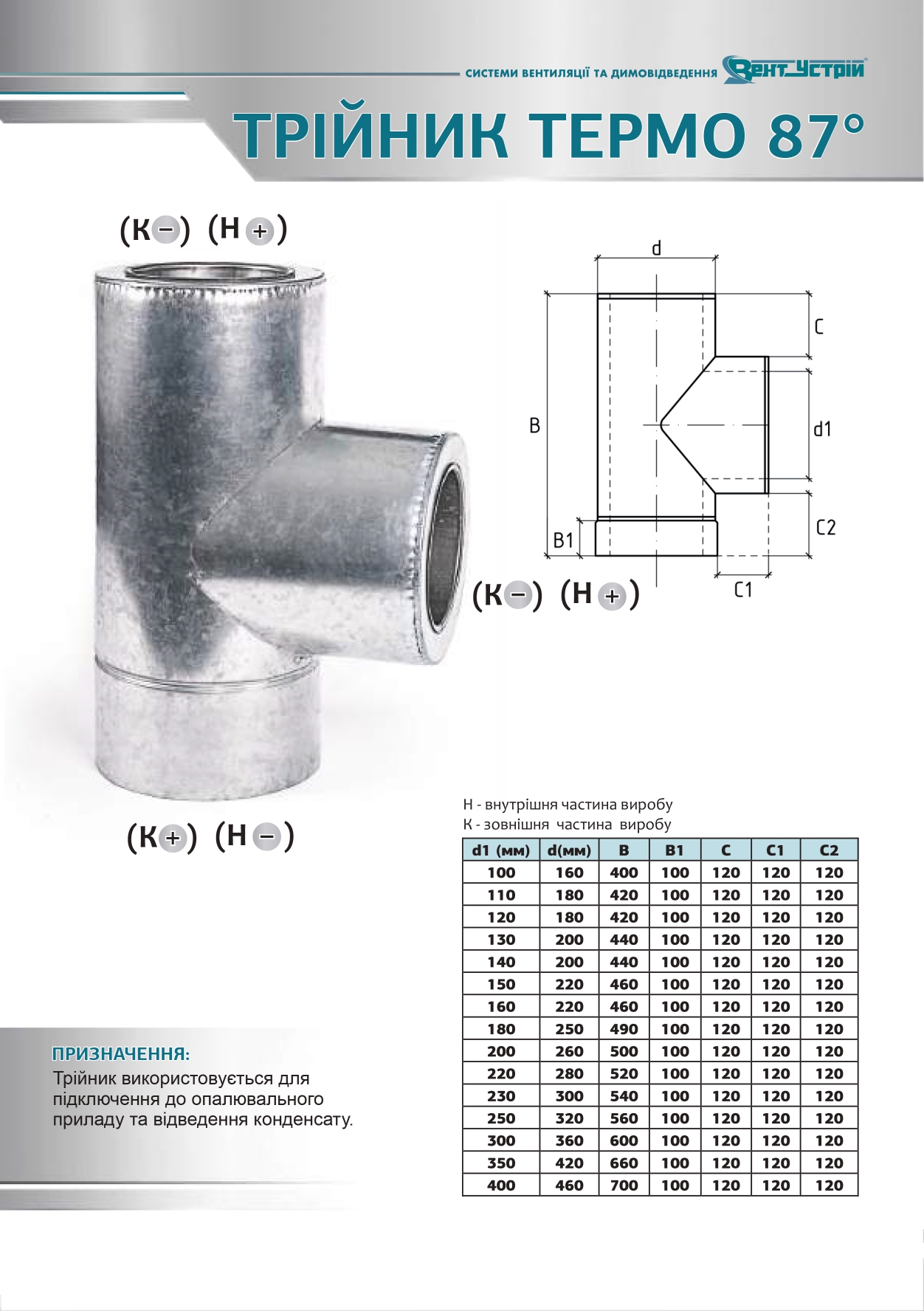 Код: Трійник 87* із нержавіючої сталі 0,5мм AISI 304 з теплоізоляцією у оцинкованому кожусі
