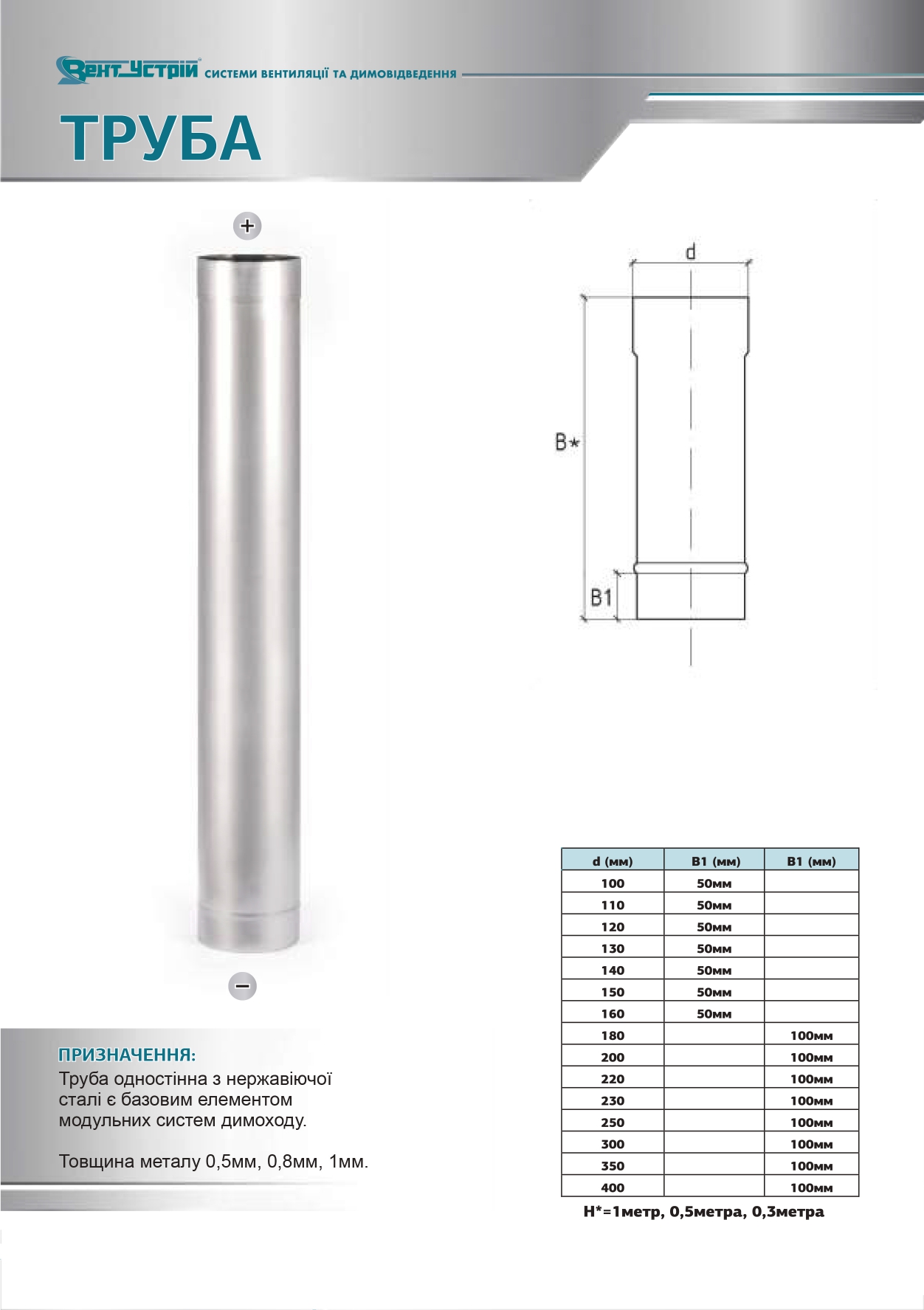 Код: Труба одностінна 1м із нержавіючої сталі 0,8мм AISI 304