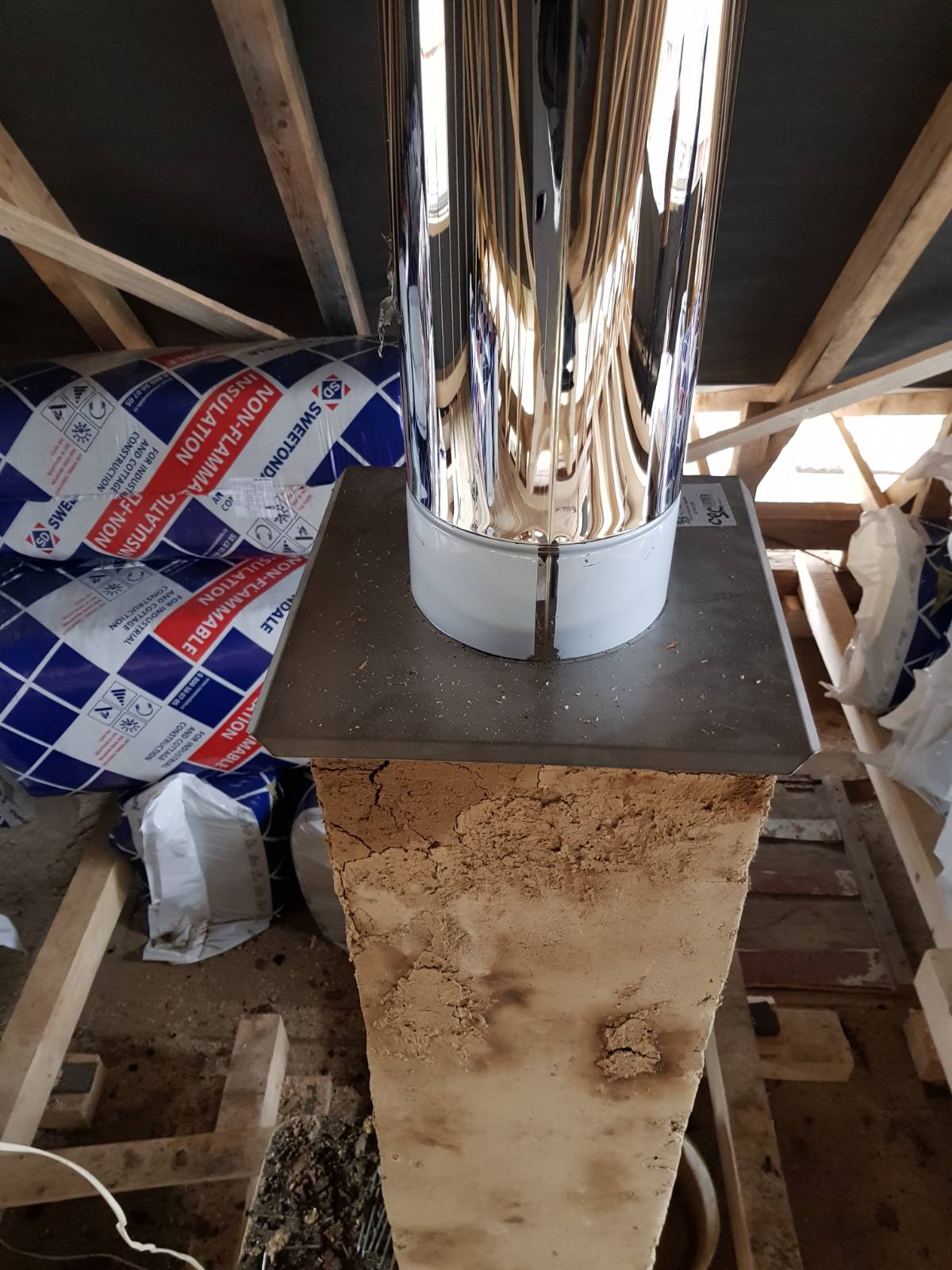 2. Зростає пожежна небезпека.   Деяки участки димохода дуже складно перевіряти та контролювати температурний режим та герметичність. Наприклад прохід скрізь дах.
