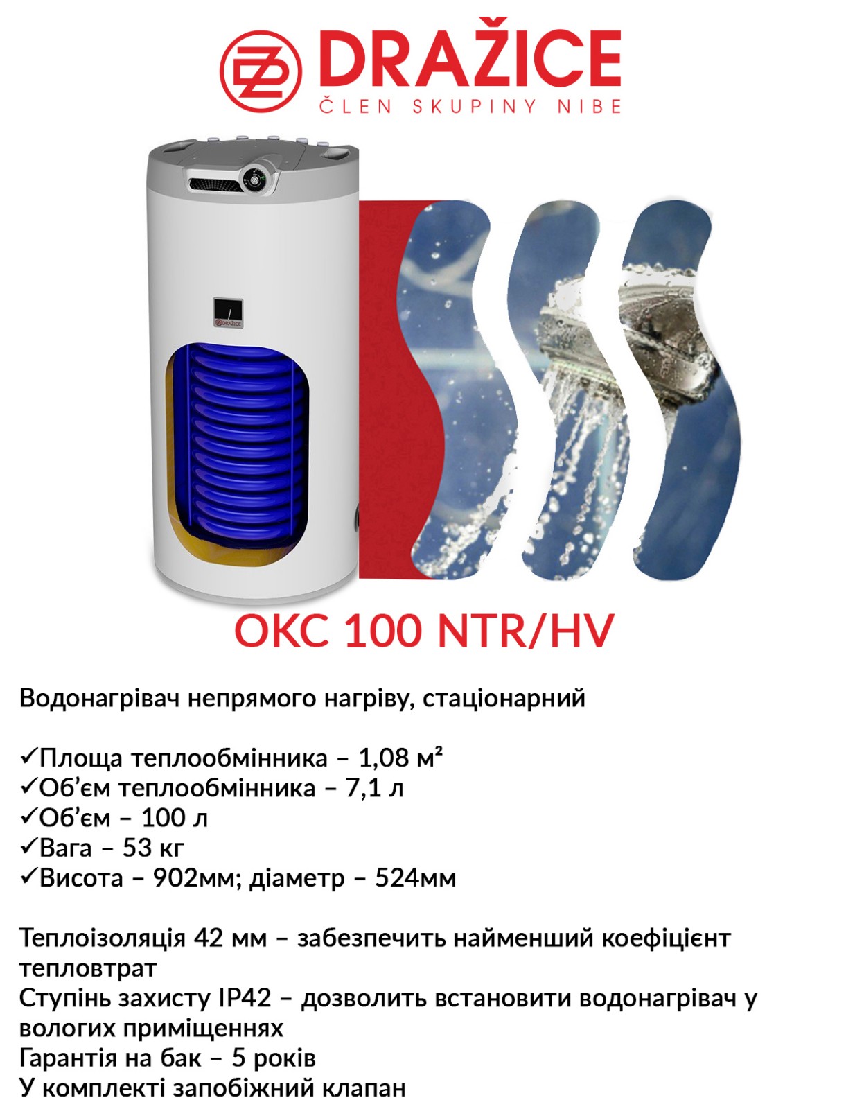 Бойлер для теплового насоса DRAZICE OKC 200 NTR/HP (об’єм 200л), площа теплообмінника 2,0 м².
