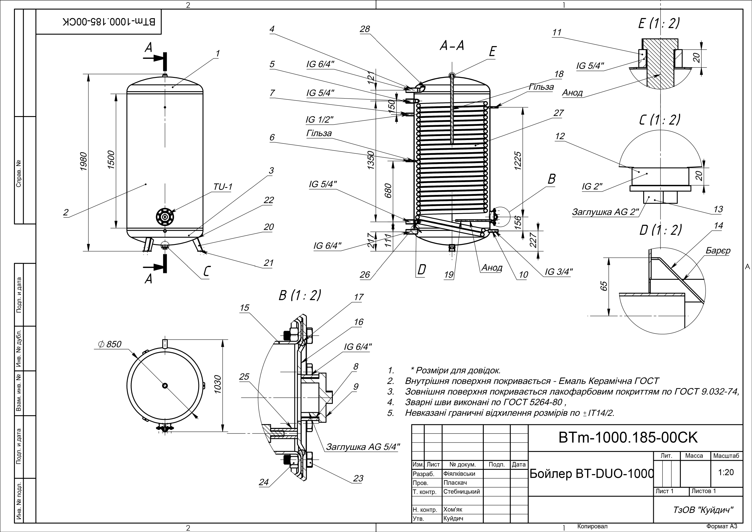 Бойлер КНТ ВТ-01-200 (об’єм 200л), площа теплообмінника 0,92 м².