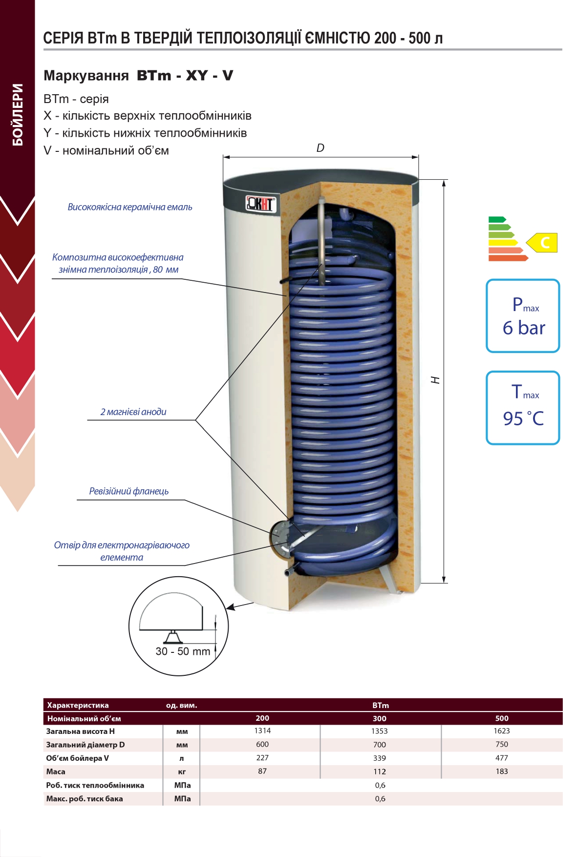 Бойлер для теплового насоса КНТ ВТm-200 (об”єм 200л), площа теплообмінника 2,4 м².