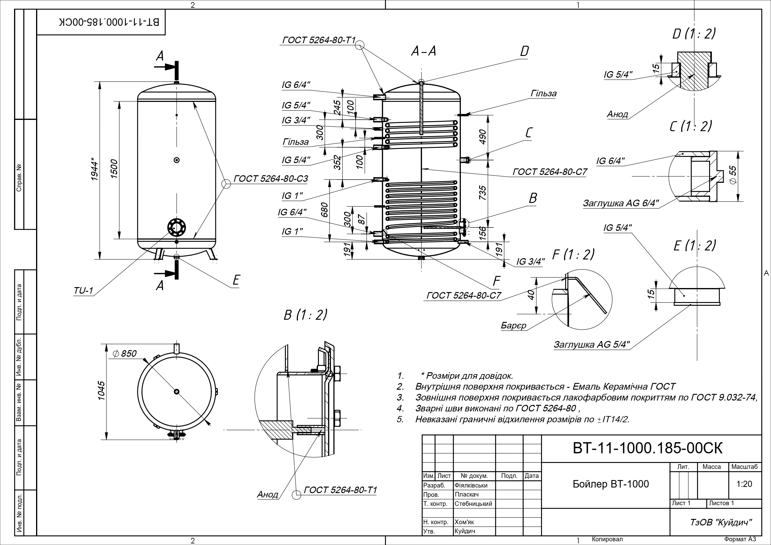 ГоловнаВодонагрівачіБойлер KHT ВТ-11-1000 в ізоляції 80 мм