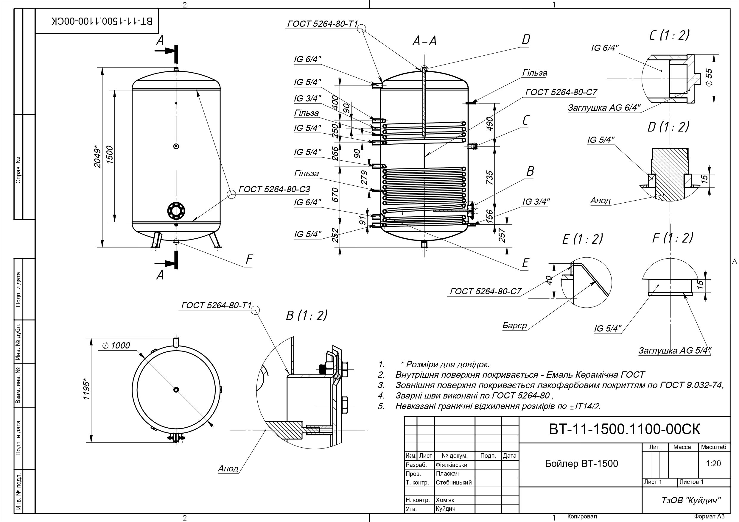 Бойлер KHT ВТ-11-1500 в ізоляції 80 мм